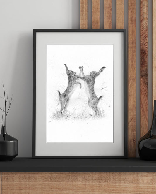 "Boxing Hares" A4 Print